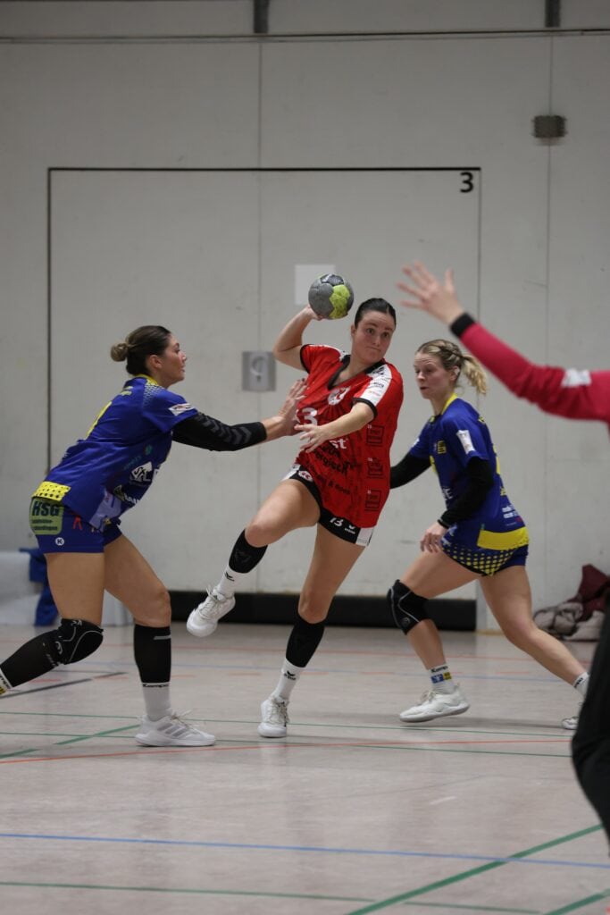 Mit einem schönen Mix aus erfahrenen Junggebliebenen & talentierten Greenhorns, unterstützt von leider auch einem Lazarett – #comebackstronger Amina – startete die wichtige 8. Saisonpartie, die mit 2 aus 3 erfolgreichen Angriffen direkt gut begann. Der Faden ging verloren, die wieder frühe Auszeit (2:4, 10.) wirkte aber – 4:4 (12.)! Teils unüberlegte Abschlüsse führten in der Folge zu einem 5-Tore-Rückstand (7:12, 22.). Per Strafwurf durch Kathrin mit dem Pausenpfiff wurde das Ergebnis in ein aufholbares 11:15 hintenraus etwas korrigiert.