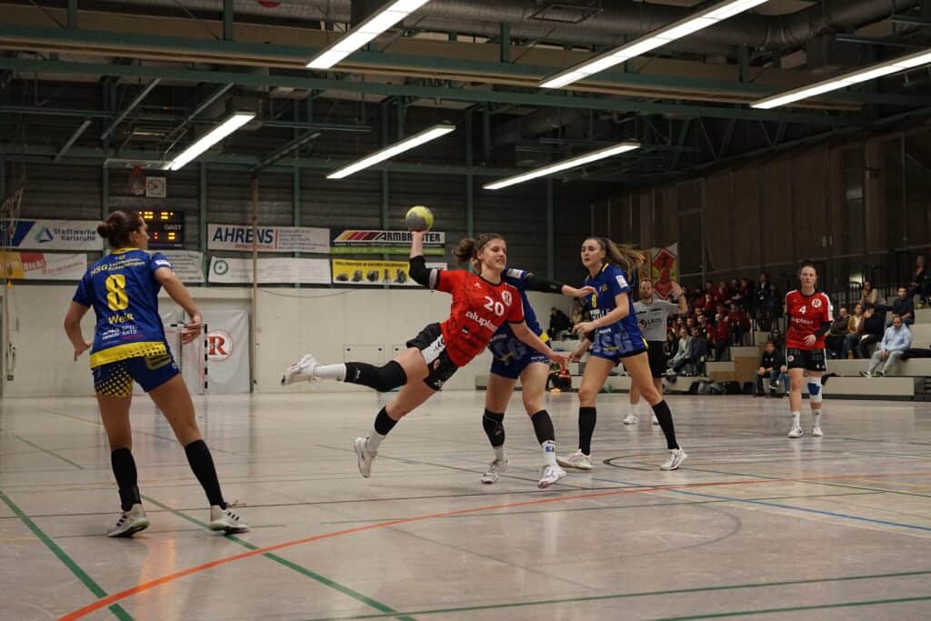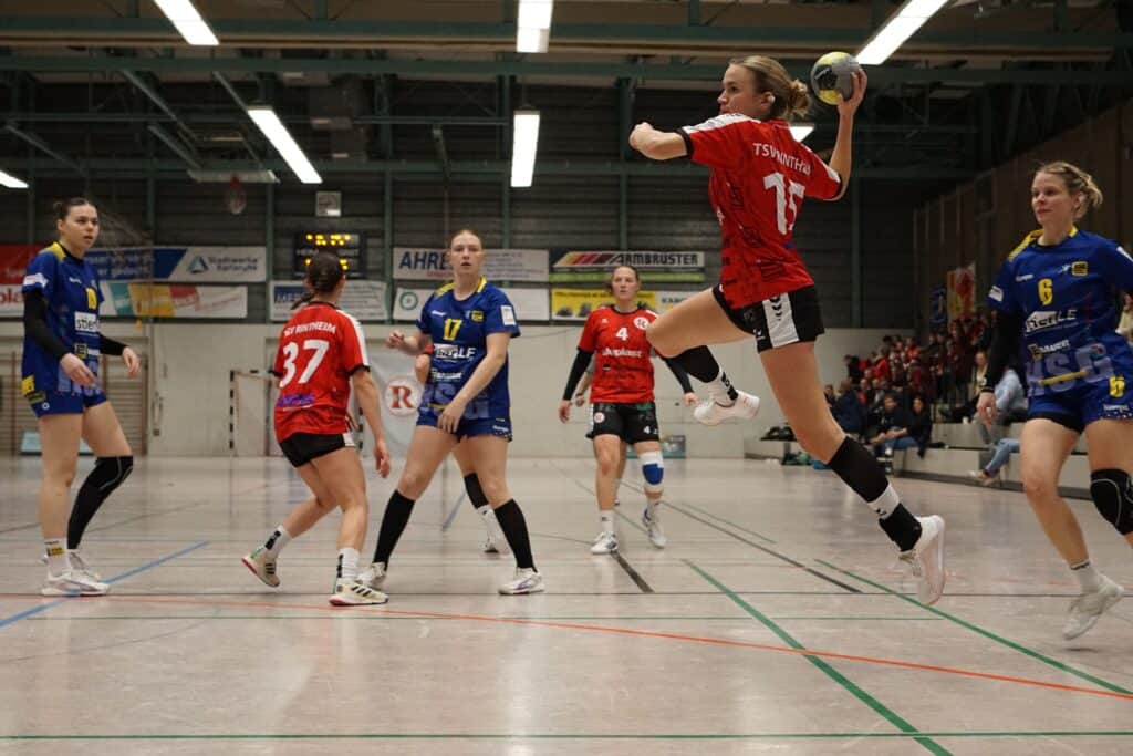 Der Pfiff nach einem glasklaren Foul an selbiger, mit eigentlich 7-Meter, blieb direkt nach Beginn von Halbzeit 2 leider aus. 4 folgende technische Fehler und ein Fehlwurf im Angriff führten zu einem 11:18 innerhalb von 184 Sekunden – in der Liga zum Aufholen eine Mammutaufgabe! 11 Minuten später waren’s dann wieder 4 Treffer Rückstand, Mitte des 2. Durchgangs beim 20:24 (46.) durch Jungspund Paula alles offen! Näher kam Rintheim leider nicht mehr an die Schwaben heran, die zudem plötzlich wirklich stark aufspielten und über Tempo zu Toren kamen. Beim 21:28 (50.) war, trotz noch einer TSV-Auszeit, die Messe leider gelesen. Das wohl vorerst wichtigste Spiel ging schließlich etwas zu hoch mit 26:34 verloren. Der letzte Treffer des Tages gehörte der heute mit 5 Treffern erfolgreichen & besten Spielerin „Jules“ – leider nur noch Ergebniskosmetik! Reminder an die Gäste: erst Shakehands, dann Jubelfoto – ist unsportlich, muss leider nochmals erwähnt werden.